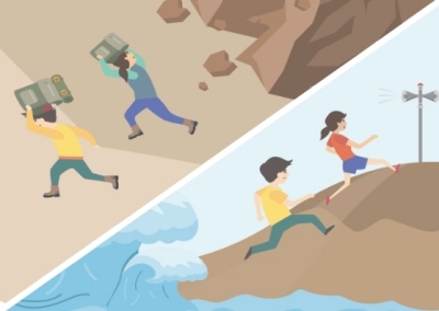 산사태, 절벽 붕괴에 주의하고 안전한 곳으로 대피합니다. 해안에서 지진해일 특보가 발령되면 높은 곳으로 이동합니다.
