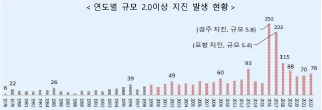 지난 5월 15일에도 동해상에서 지진 규모 4.5의 지진이 발생하는 등 최근 10년 새 국내 지진의 발생 빈도가 잦아지고 규모도 예전보다 커지고 있는 추세입니다.