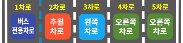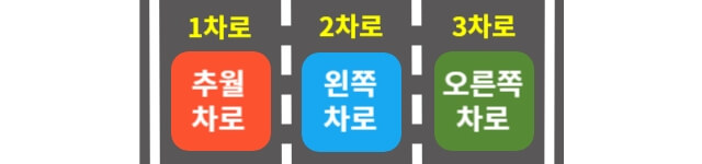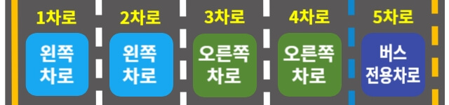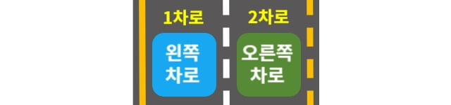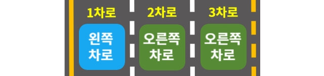 | 왼쪽 차로 | 승용자동차와 승합자동차(경형, 소형, 중형)만 통행할 수 있음 |
