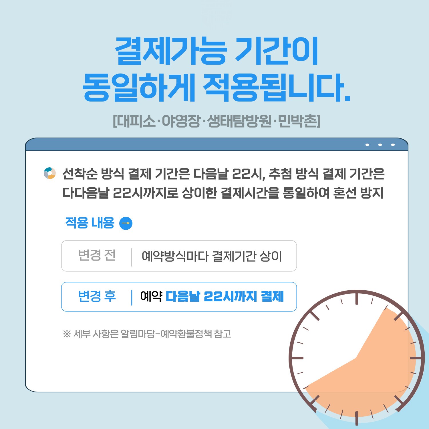선착순 예약의 경우도 신청일 다음날 오후 10시까지 결제를 완료해야 예약이 완료됩니다.