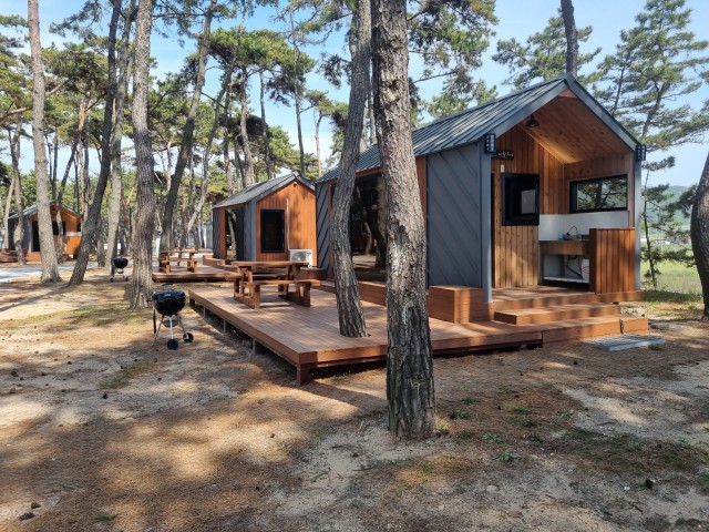 방갈로나 펜션 같은 시설물이 설치된 형태입니다. 좀 더 여유롭고 럭셔리한 캠핑을 즐길 수 있습니다.