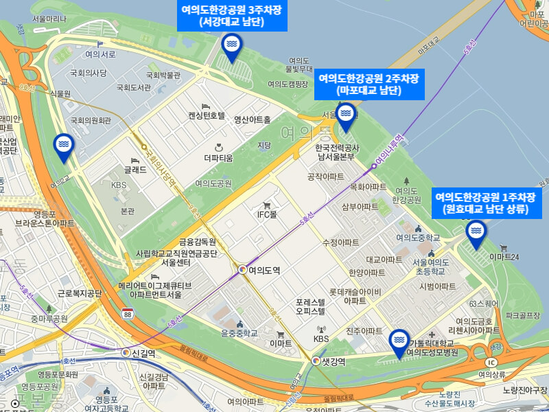 여의도한강공원 1주차장 (원효대교 남단)