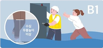 물이 조금이라도 흘러 들어오면 즉시 대피 (어린이 노약자 즉시 대피)